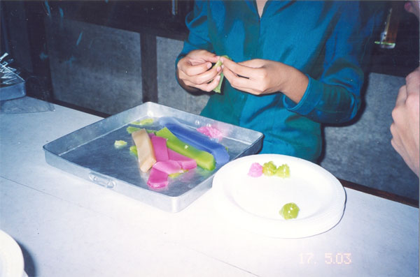 NP175 ภาพคนทำขนมกำลังประดิษฐ์ขนมชั้นให้มีลักษณะสวยงาม