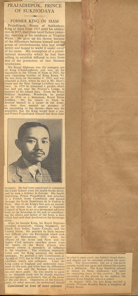 Prajadhipok, Prince of Sukhodaya former King of Siam