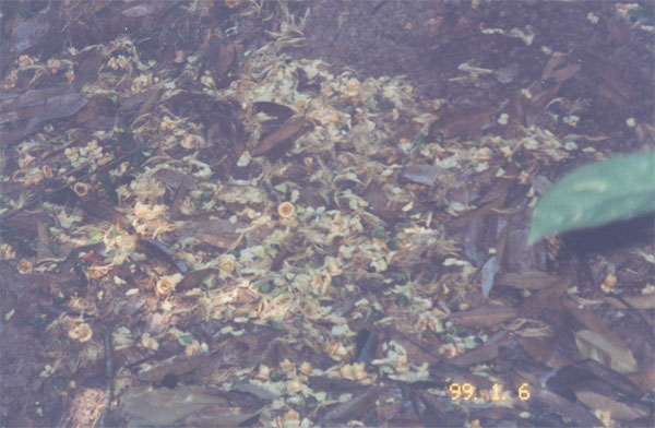 ดอกทุเรียนที่ร่วงจากต้นซึ่งเกิดจากการให้น้ำที่ไม่พอดี