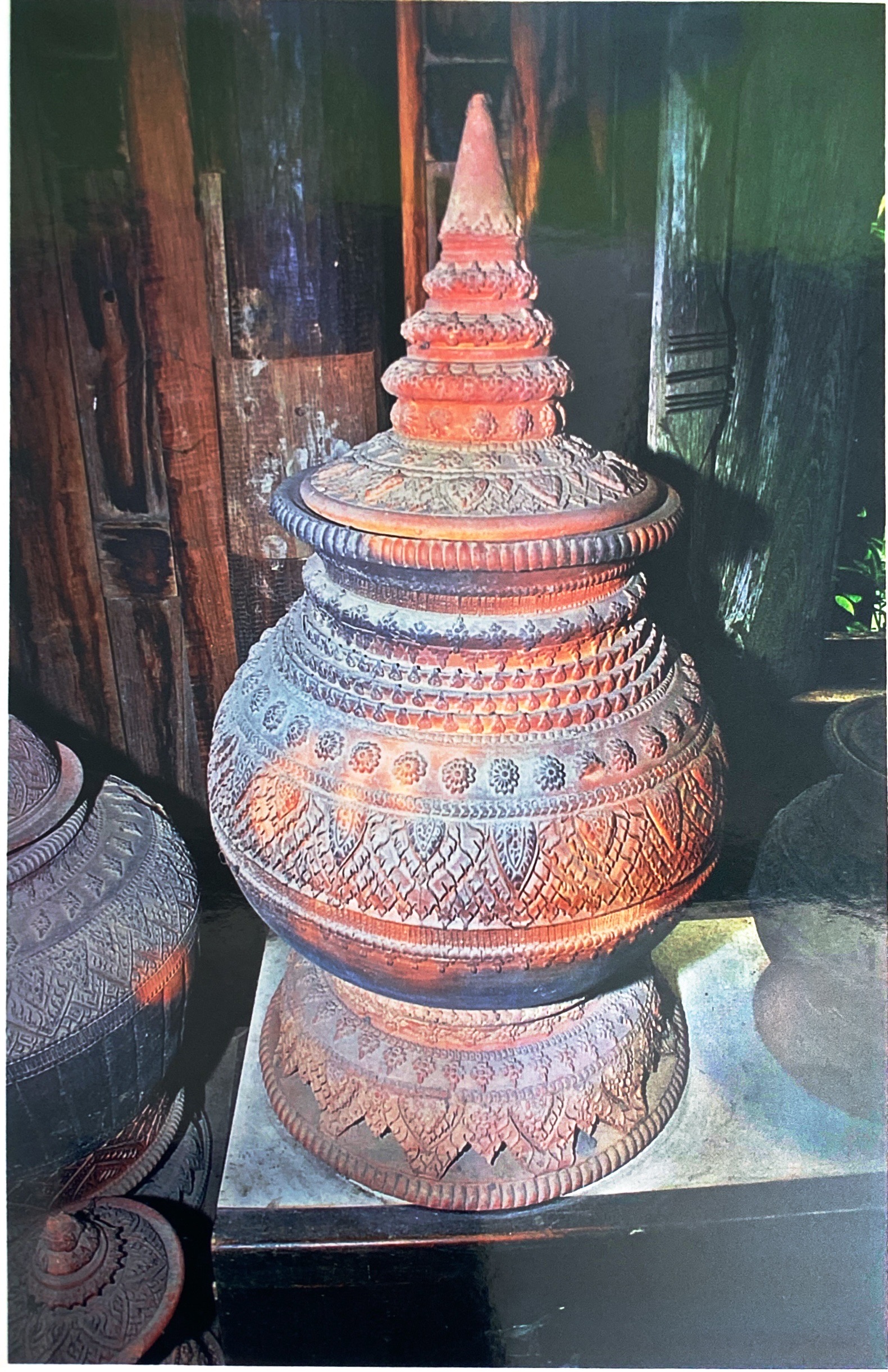 โอ่งสลักลายวิจิตร ก้นกลมคอสูง ฝายอด 4 ชั้น