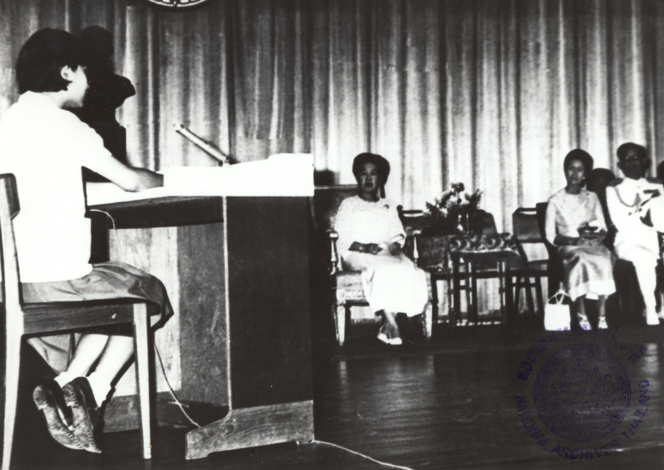 ด.ญ.ขจร ถาวรเศรษฐ ชั้นมัธยมศึกษาปีที่ 2 โรงเรียนสตรีวิทยา กำลังอ่านทำนองเสนาะ เฉพาะพระพักตร์สมเด็จพระนางเจ้ารำไพพรรณี พระบรมราชินีในรัชกาลที่ 7 ณ ห้องประชุมปีกขวา โรงละครแห่งชาติ เมื่อ 21 มีนาคม 2516